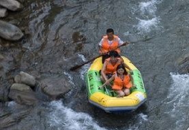 自助性皮筏漂流是旅游业的新兴产品,是集运动、娱乐、休闲、刺激性为一体的健身项目。如乘皮筏在清澈见底的碧 波顺流而下,时而穿行于落差大、急弯多的险滩中,颇有回肠九转、有惊无险之感。时而荡舟汇水成潭、碧绿如镜的深潭 中,悠闲自在,情趣妙趣犹然而生。